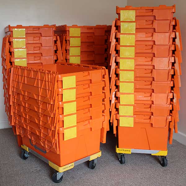 Package includes 45 x 60 L crates, 45 x labels, 1 x crate skate, FREE delivery and pick up.